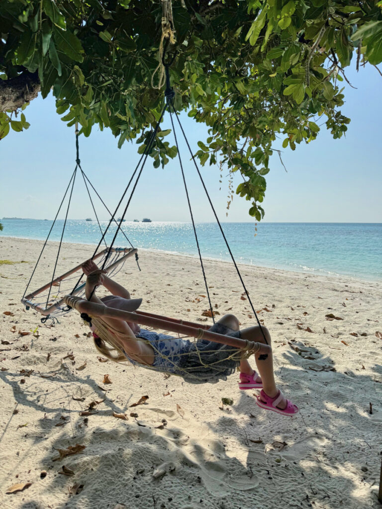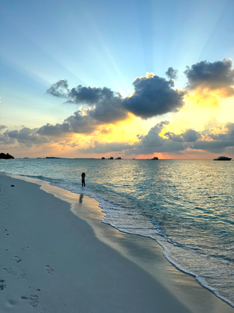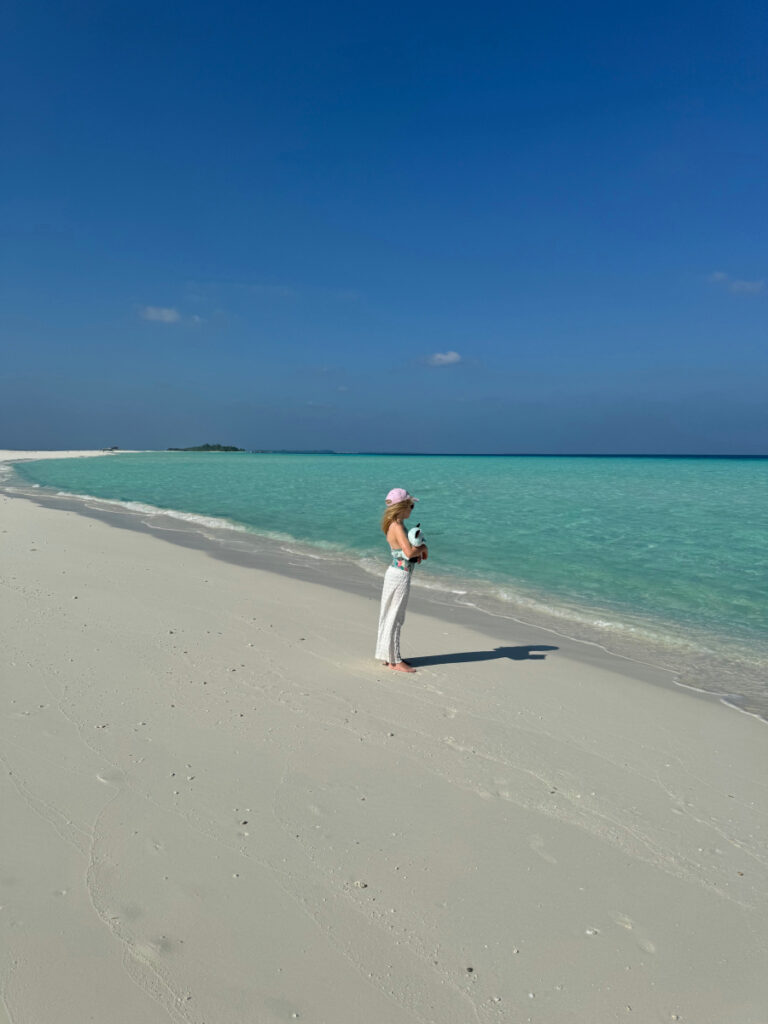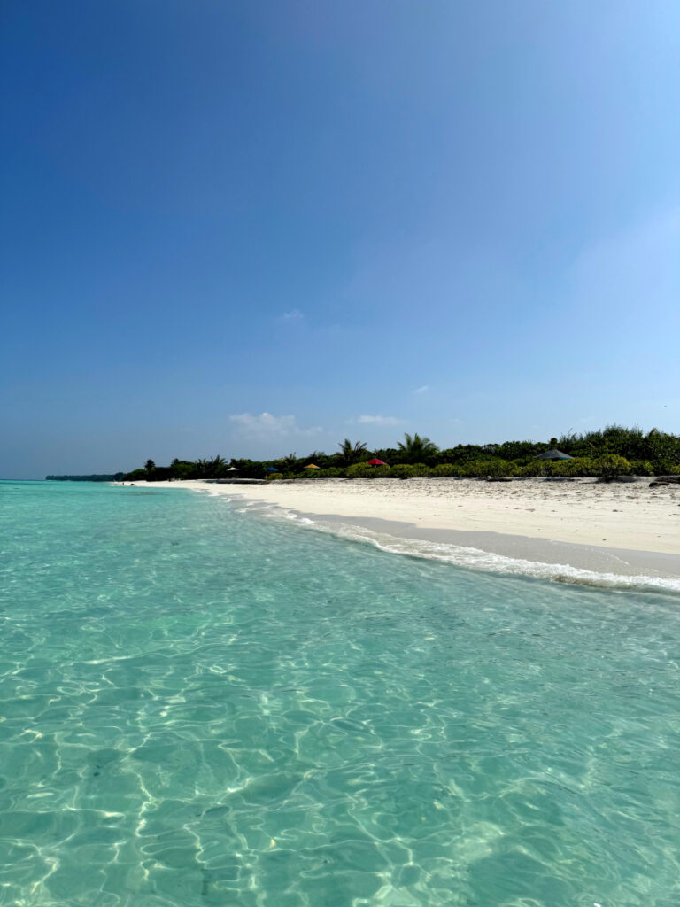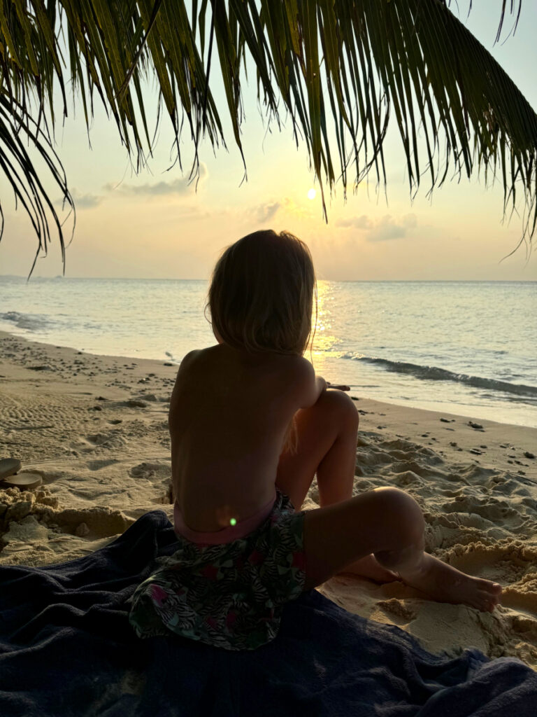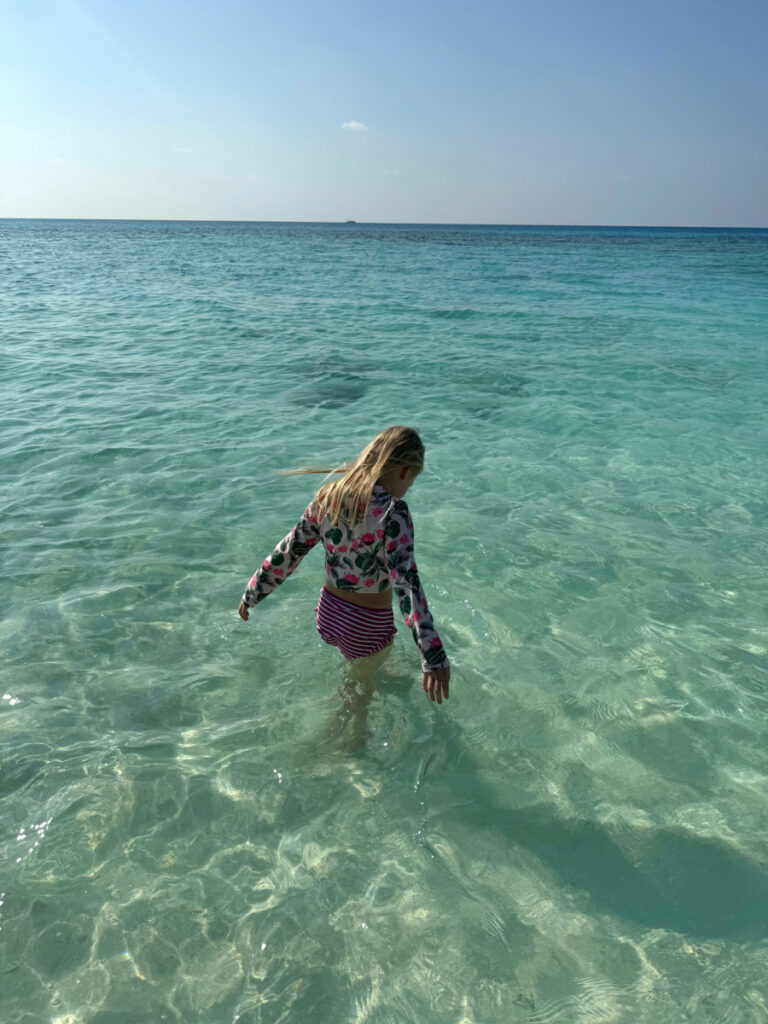 Wie bereits in der Einleitung erwähnt habe ich die Insel Dhigurah bei Instagram entdeckt und ziemlich schnell entschieden, dass ich diesen Ort mit meinen eigenen Augen sehen muss. Der Januar in Berlin war im Winter 2025 besonders grau und ich sehnte mich nach Sonne und Wärme. Da wir Anfang Februar Winterferien in Berlin haben, habe ich ganz spontan entschieden mit meiner Tochter auf die Malediven zu reisen. Für eine Woche ein bisschen verrückt – so würden zumindest andere Leute sagen 😉 Aber unsere Tochter ist sehr reiseerprobt und die Flugzeiten mit Condor ab Frankfurt waren ideal. Wir hatten sechs ganze Tage vor Ort und sieben Nächte.