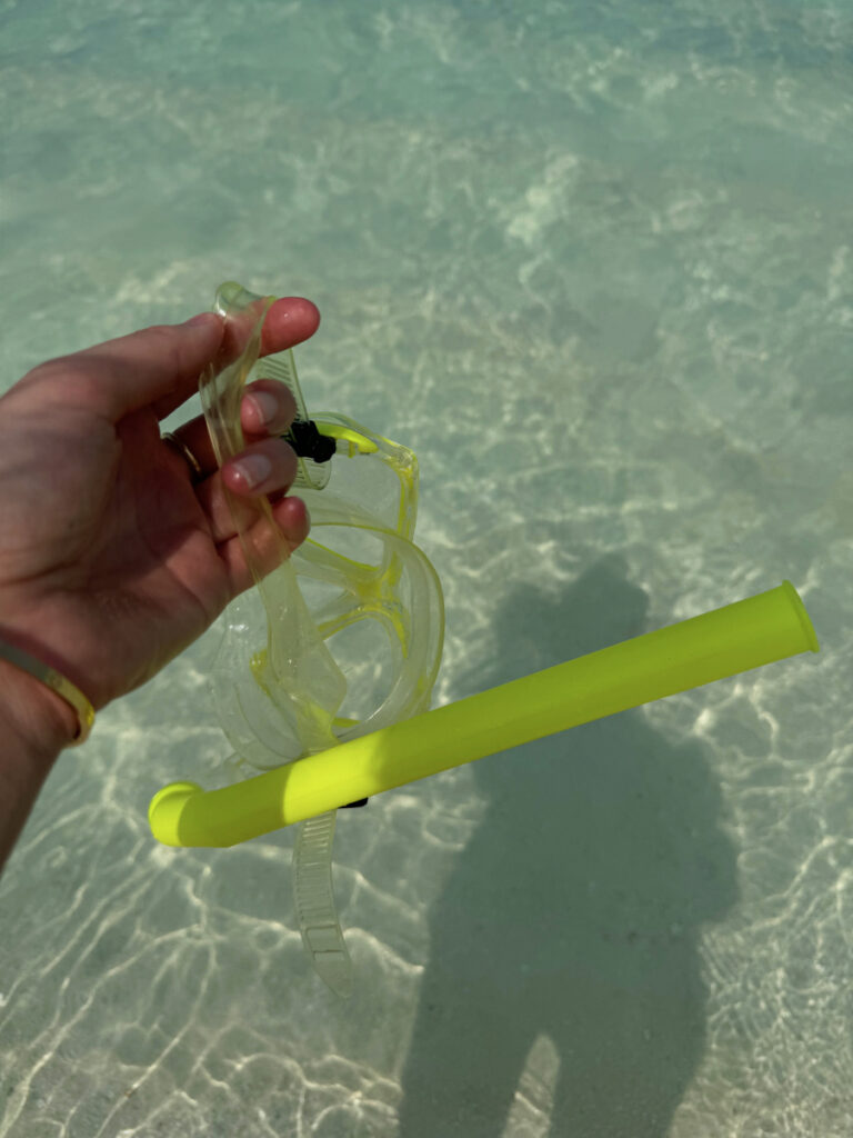 • Während Ihr bei den Outfits nicht viel Auswahl benötigt, solltet Ihr unbedingt Eure eigenen Schnorchel-Ausrüstung mitnehmen. Auch wenn ich mit meiner Tochter nur bis maximal zehn Meter entfernt vom Strand schnorcheln war, haben wir ganz viele bunte Fische und sogar einige Babysharks gesehen. Nehmt Euch nur bloß vor den Triggerfischen (Drückerfischen) in Acht.